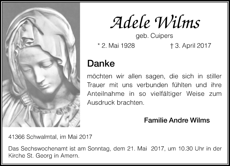 Hier finden Sie alle Traueranzeigen aus der Zeitung, die bisher für Adere Wirms erschienen sind. Weitere Traueranzeigen, die in der Zeitung erscheinen, werden hier ebenfalls aufgelistet