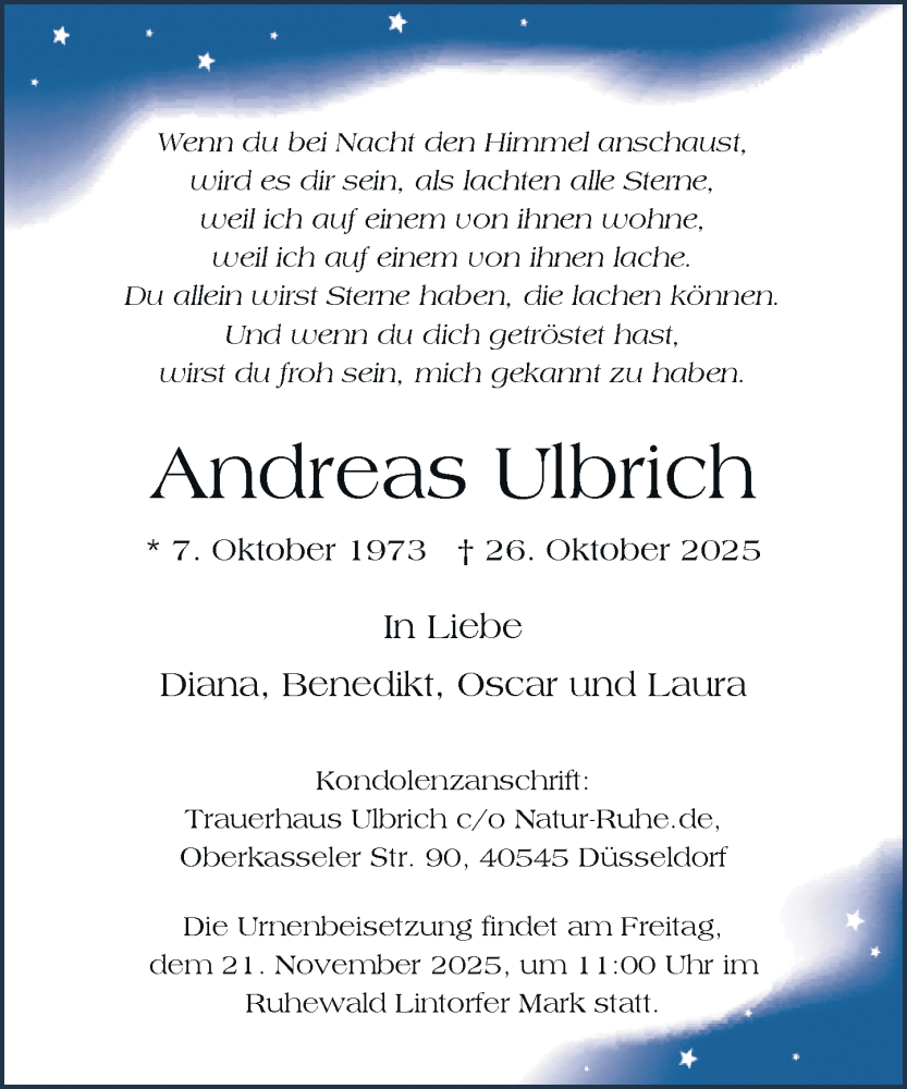 Hier finden Sie alle Traueranzeigen aus der Zeitung, die bisher für Andreas Ulbrich erschienen sind. Weitere Traueranzeigen, die in der Zeitung erscheinen, werden hier ebenfalls aufgelistet