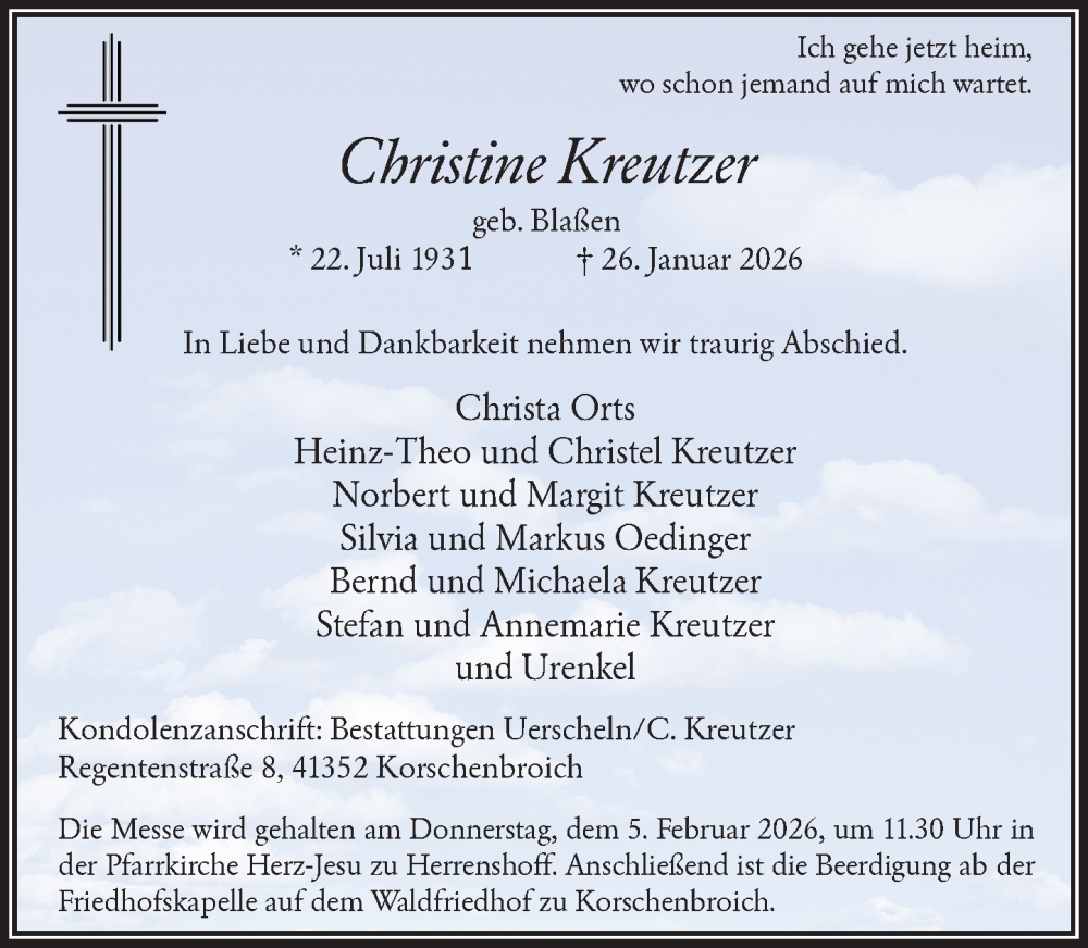 Hier finden Sie alle Traueranzeigen aus der Zeitung, die bisher für Christine Kreutzer erschienen sind. Weitere Traueranzeigen, die in der Zeitung erscheinen, werden hier ebenfalls aufgelistet