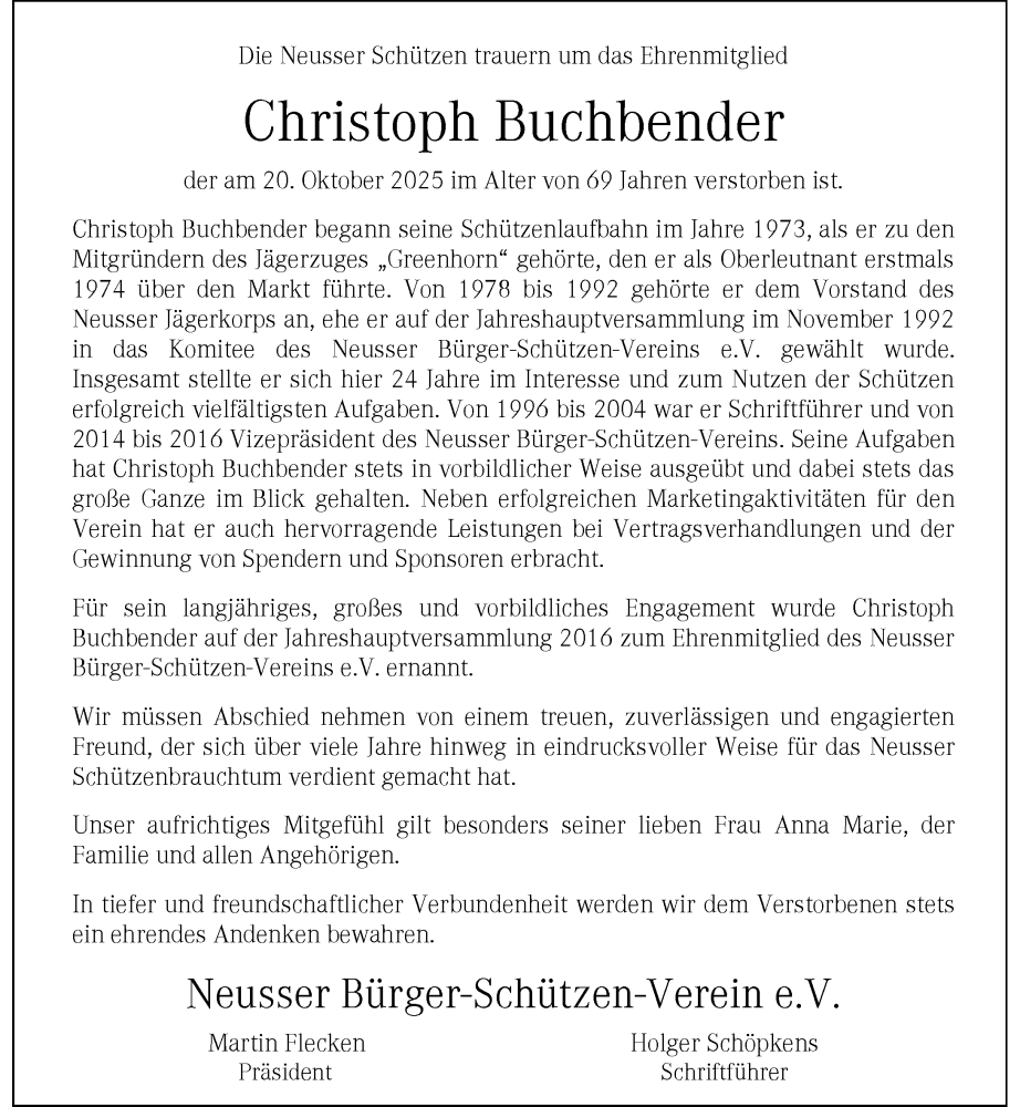Hier finden Sie alle Traueranzeigen aus der Zeitung, die bisher für Christoph Buchbender erschienen sind. Weitere Traueranzeigen, die in der Zeitung erscheinen, werden hier ebenfalls aufgelistet