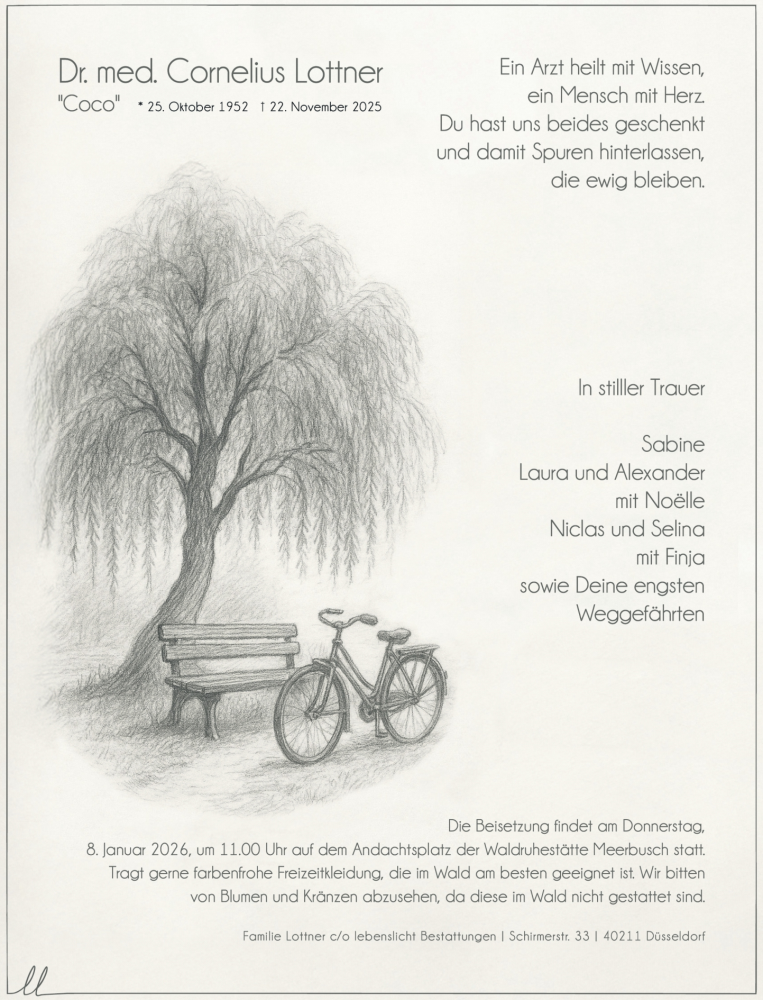 Hier finden Sie alle Traueranzeigen aus der Zeitung, die bisher für Cornelius Lottner erschienen sind. Weitere Traueranzeigen, die in der Zeitung erscheinen, werden hier ebenfalls aufgelistet