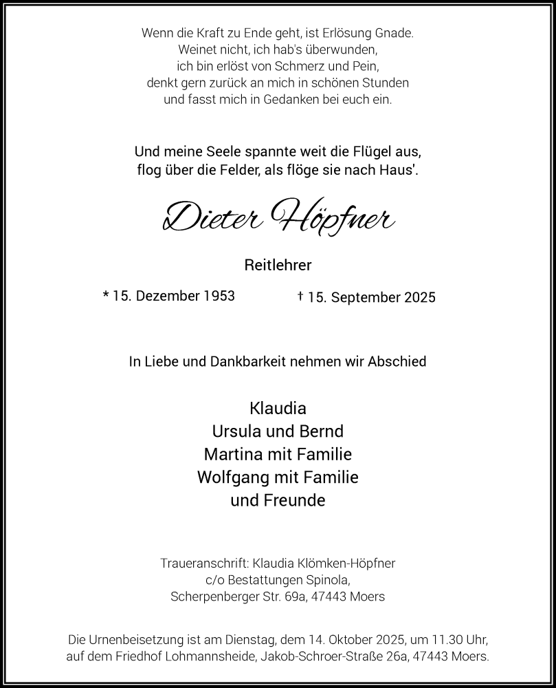 Hier finden Sie alle Traueranzeigen aus der Zeitung, die bisher für Dieter Höpfner erschienen sind. Weitere Traueranzeigen, die in der Zeitung erscheinen, werden hier ebenfalls aufgelistet
