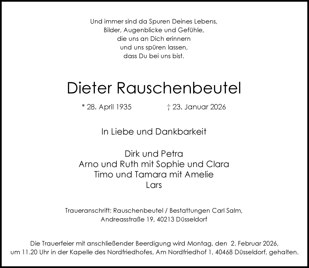 Hier finden Sie alle Traueranzeigen aus der Zeitung, die bisher für Dieter Rauschenbeutel erschienen sind. Weitere Traueranzeigen, die in der Zeitung erscheinen, werden hier ebenfalls aufgelistet