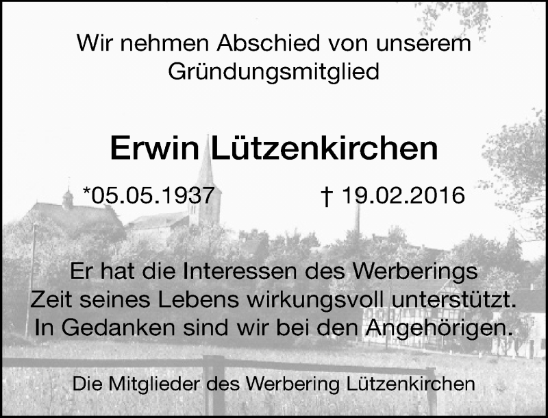 Hier finden Sie alle Traueranzeigen aus der Zeitung, die bisher für Erwin Lützenkirchen erschienen sind. Weitere Traueranzeigen, die in der Zeitung erscheinen, werden hier ebenfalls aufgelistet