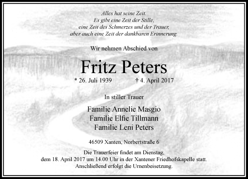 Hier finden Sie alle Traueranzeigen aus der Zeitung, die bisher für Fritz Peters erschienen sind. Weitere Traueranzeigen, die in der Zeitung erscheinen, werden hier ebenfalls aufgelistet