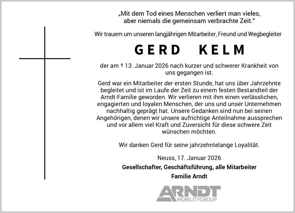 Hier finden Sie alle Traueranzeigen aus der Zeitung, die bisher für Gerd Kelm erschienen sind. Weitere Traueranzeigen, die in der Zeitung erscheinen, werden hier ebenfalls aufgelistet