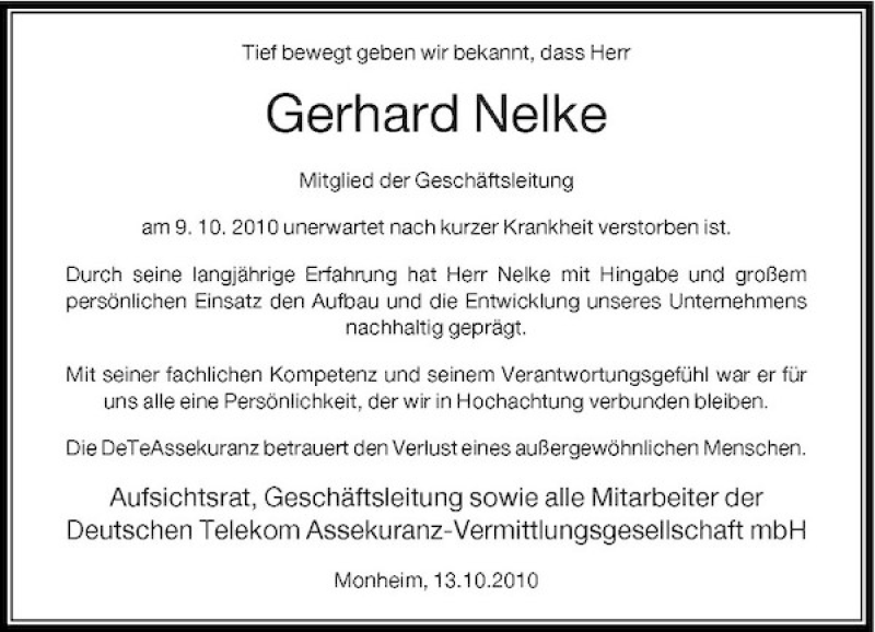 Hier finden Sie alle Traueranzeigen aus der Zeitung, die bisher für Gerhard Nelke erschienen sind. Weitere Traueranzeigen, die in der Zeitung erscheinen, werden hier ebenfalls aufgelistet