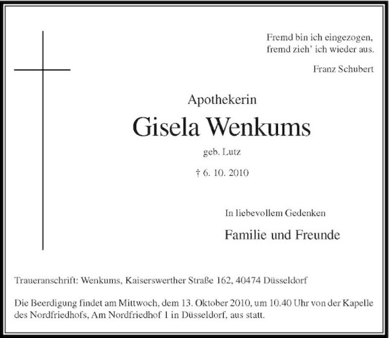 Hier finden Sie alle Traueranzeigen aus der Zeitung, die bisher für Gisela Wenkums erschienen sind. Weitere Traueranzeigen, die in der Zeitung erscheinen, werden hier ebenfalls aufgelistet