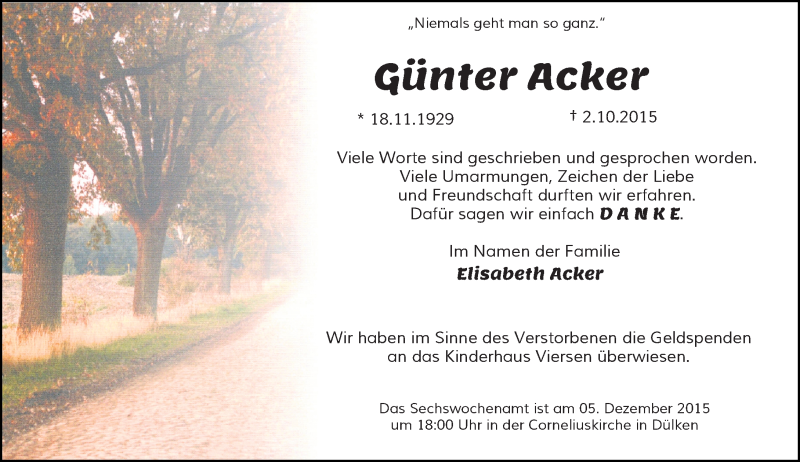 Hier finden Sie alle Traueranzeigen aus der Zeitung, die bisher für Günter Acker erschienen sind. Weitere Traueranzeigen, die in der Zeitung erscheinen, werden hier ebenfalls aufgelistet