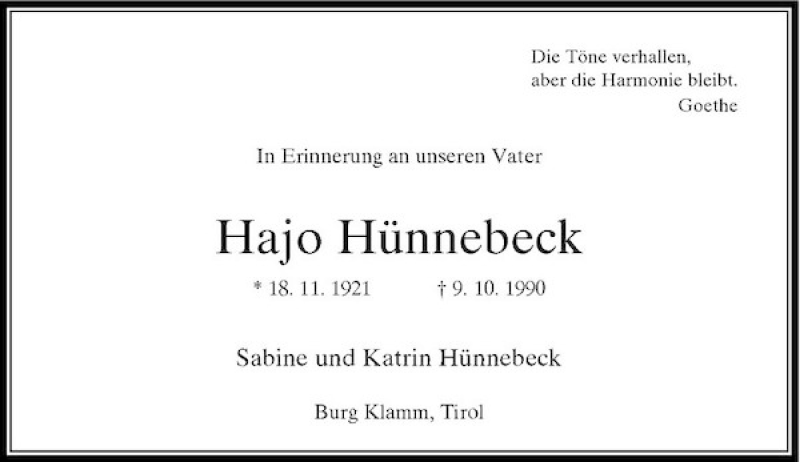 Hier finden Sie alle Traueranzeigen aus der Zeitung, die bisher für Hajo Hünnebeck erschienen sind. Weitere Traueranzeigen, die in der Zeitung erscheinen, werden hier ebenfalls aufgelistet