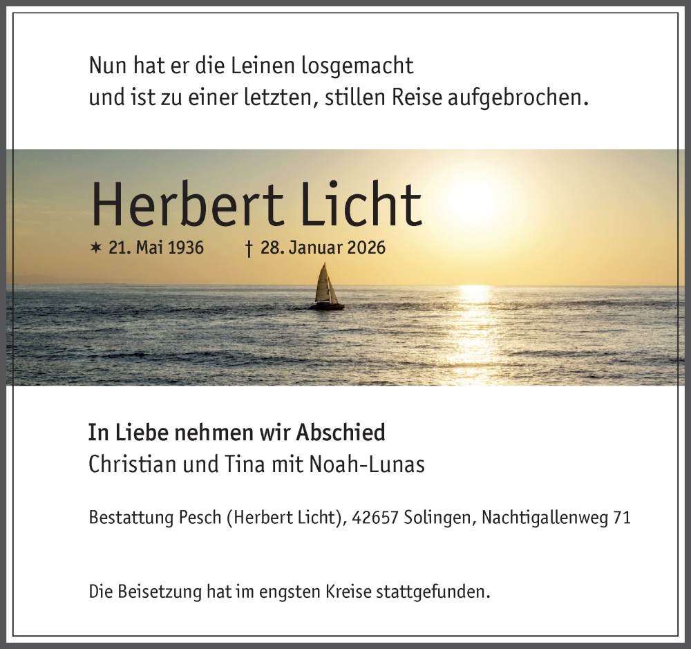 Hier finden Sie alle Traueranzeigen aus der Zeitung, die bisher für Herbert Licht erschienen sind. Weitere Traueranzeigen, die in der Zeitung erscheinen, werden hier ebenfalls aufgelistet