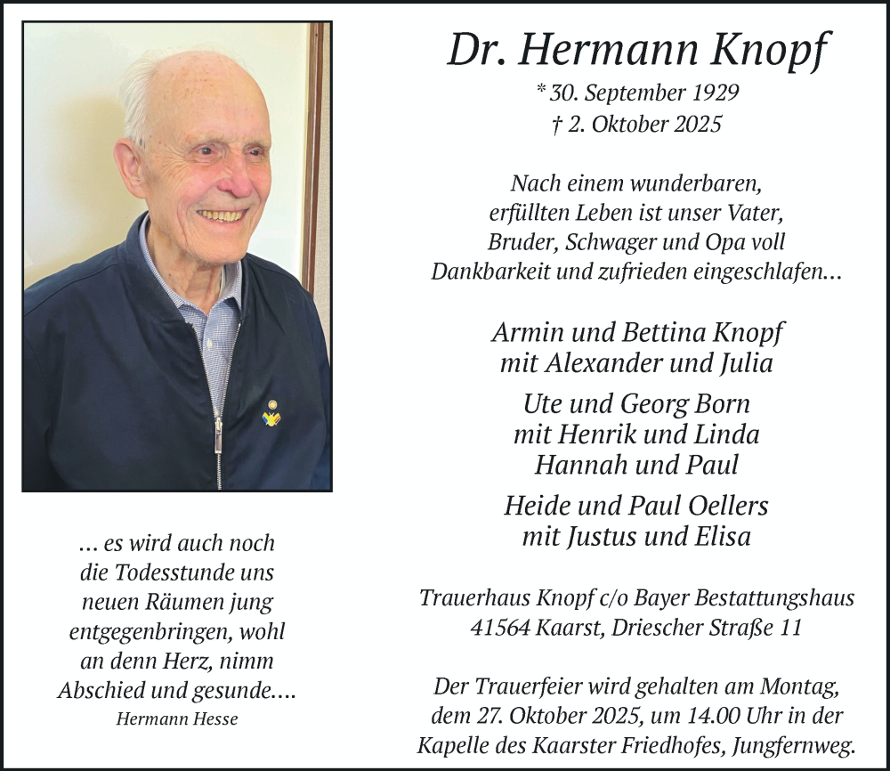 Hier finden Sie alle Traueranzeigen aus der Zeitung, die bisher für Hermann Knopf erschienen sind. Weitere Traueranzeigen, die in der Zeitung erscheinen, werden hier ebenfalls aufgelistet
