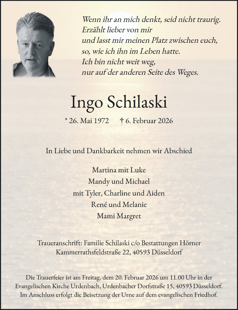 Hier finden Sie alle Traueranzeigen aus der Zeitung, die bisher für Ingo Schilaski erschienen sind. Weitere Traueranzeigen, die in der Zeitung erscheinen, werden hier ebenfalls aufgelistet