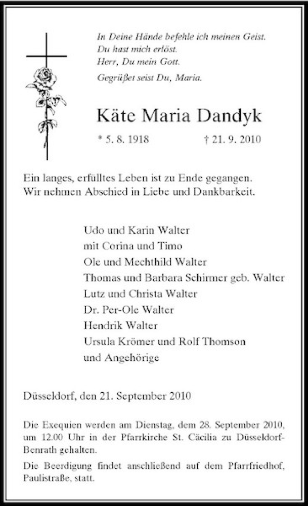 Hier finden Sie alle Traueranzeigen aus der Zeitung, die bisher für Käte Maria Dandyk erschienen sind. Weitere Traueranzeigen, die in der Zeitung erscheinen, werden hier ebenfalls aufgelistet