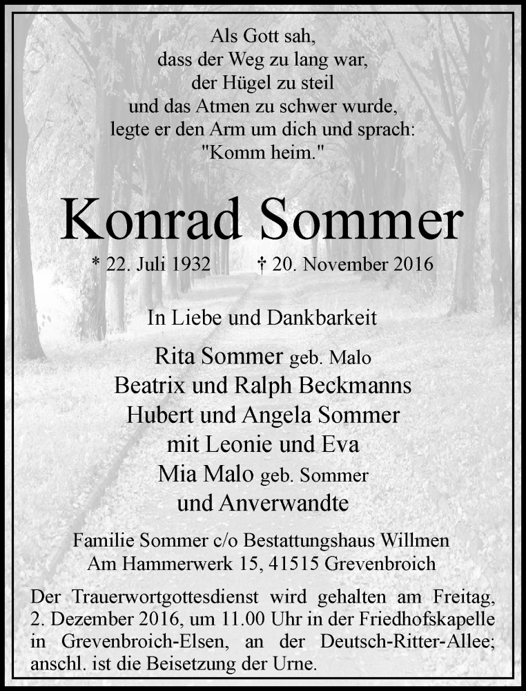 Hier finden Sie alle Traueranzeigen aus der Zeitung, die bisher für Konrad Sommer erschienen sind. Weitere Traueranzeigen, die in der Zeitung erscheinen, werden hier ebenfalls aufgelistet