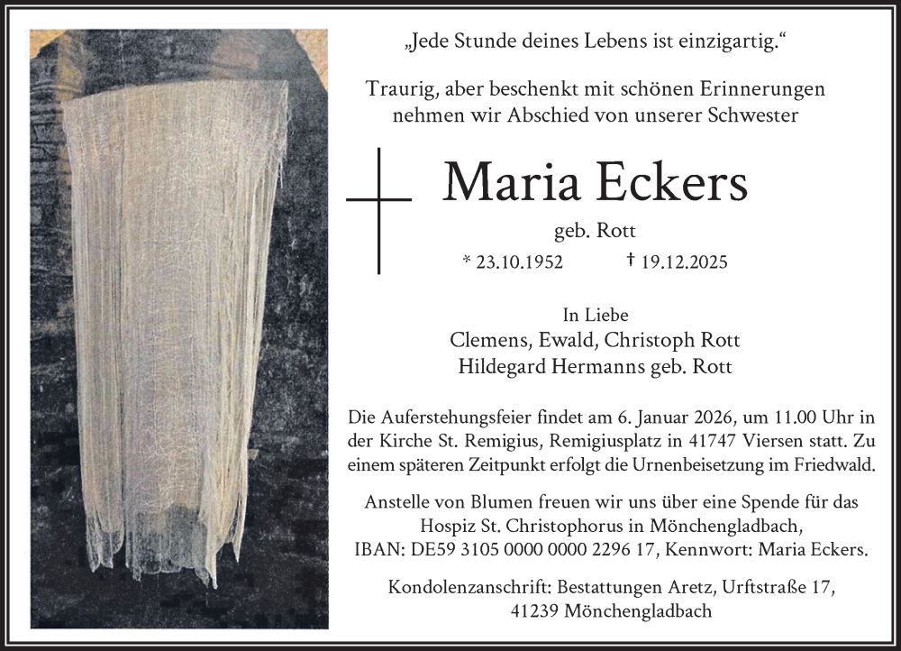Hier finden Sie alle Traueranzeigen aus der Zeitung, die bisher für Maria Eckers erschienen sind. Weitere Traueranzeigen, die in der Zeitung erscheinen, werden hier ebenfalls aufgelistet