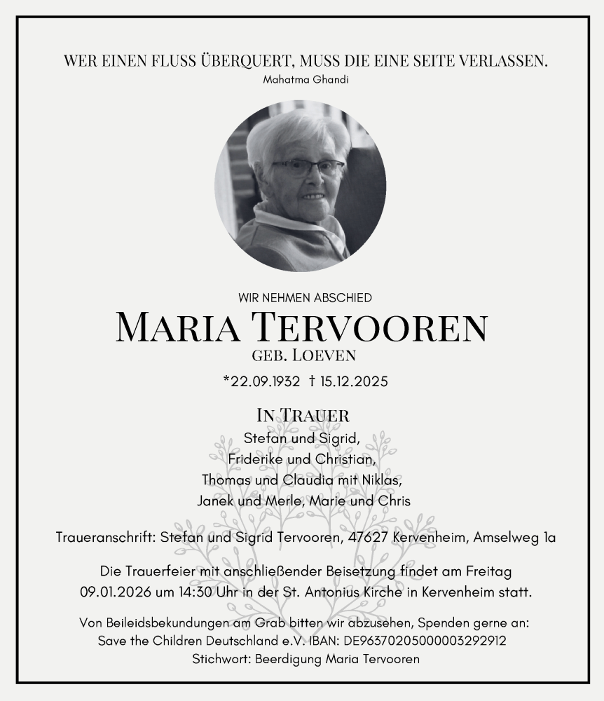 Hier finden Sie alle Traueranzeigen aus der Zeitung, die bisher für Maria Tervooren erschienen sind. Weitere Traueranzeigen, die in der Zeitung erscheinen, werden hier ebenfalls aufgelistet