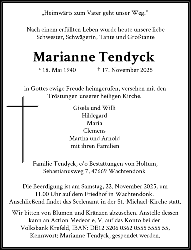 Hier finden Sie alle Traueranzeigen aus der Zeitung, die bisher für Marianne Tendyck erschienen sind. Weitere Traueranzeigen, die in der Zeitung erscheinen, werden hier ebenfalls aufgelistet