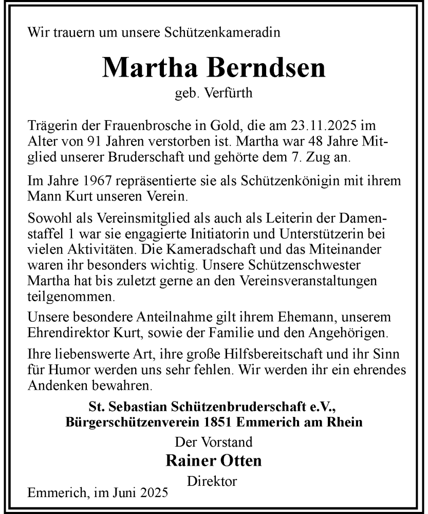 Hier finden Sie alle Traueranzeigen aus der Zeitung, die bisher für Martha Berndsen erschienen sind. Weitere Traueranzeigen, die in der Zeitung erscheinen, werden hier ebenfalls aufgelistet