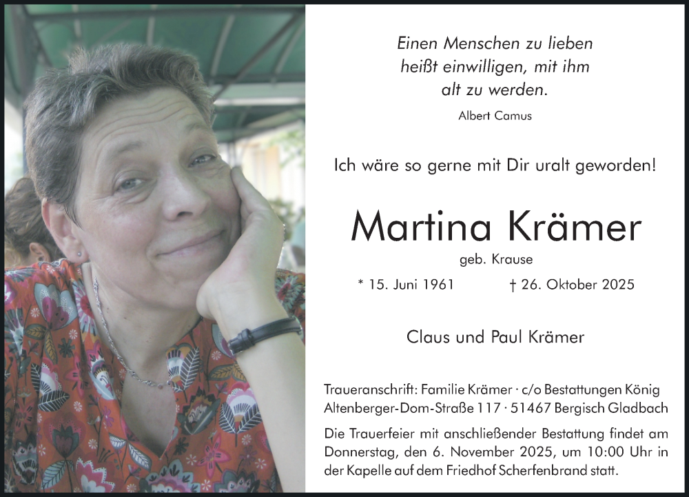 Hier finden Sie alle Traueranzeigen aus der Zeitung, die bisher für Martina Krämer erschienen sind. Weitere Traueranzeigen, die in der Zeitung erscheinen, werden hier ebenfalls aufgelistet