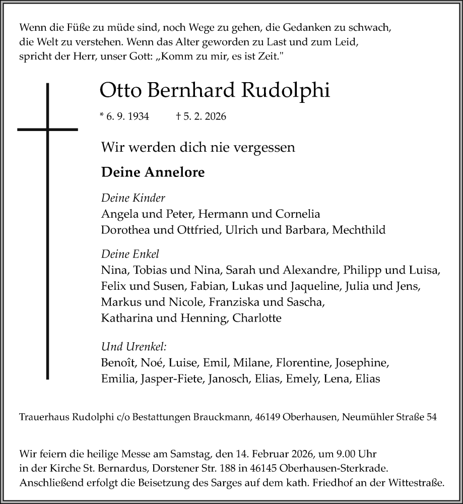 Hier finden Sie alle Traueranzeigen aus der Zeitung, die bisher für Otto Bernhard Rudolphi erschienen sind. Weitere Traueranzeigen, die in der Zeitung erscheinen, werden hier ebenfalls aufgelistet