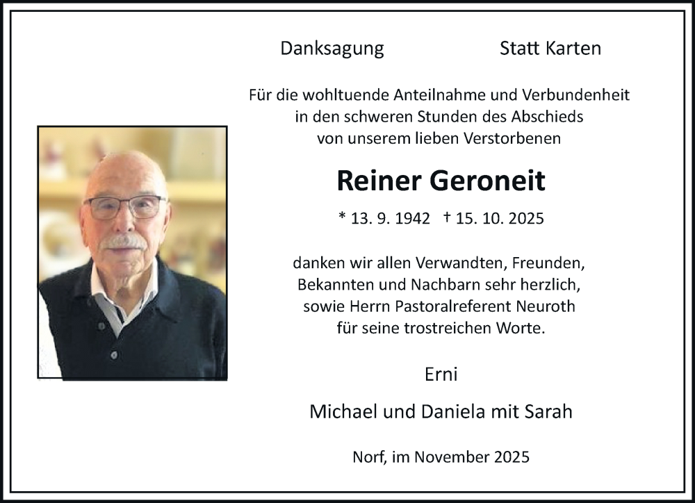Hier finden Sie alle Traueranzeigen aus der Zeitung, die bisher für Reiner Geroneit erschienen sind. Weitere Traueranzeigen, die in der Zeitung erscheinen, werden hier ebenfalls aufgelistet