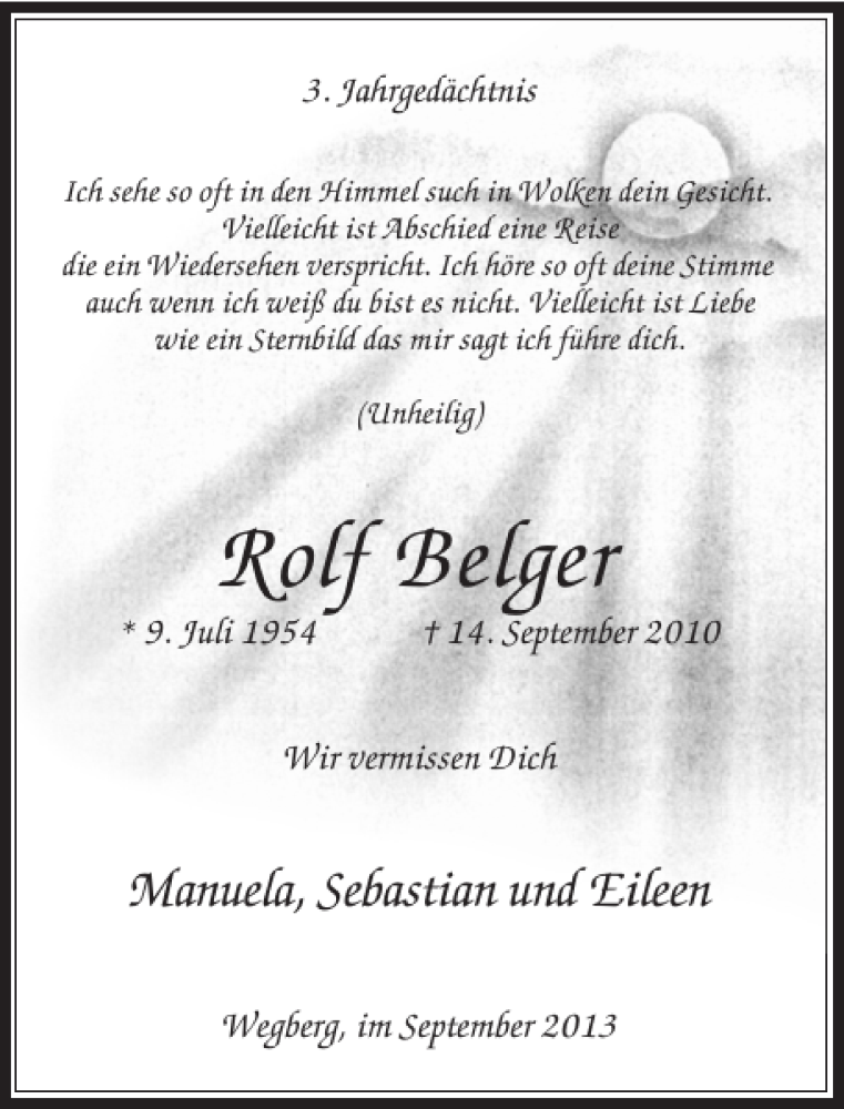 Hier finden Sie alle Traueranzeigen aus der Zeitung, die bisher für Rolf Belger erschienen sind. Weitere Traueranzeigen, die in der Zeitung erscheinen, werden hier ebenfalls aufgelistet