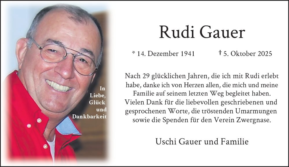 Hier finden Sie alle Traueranzeigen aus der Zeitung, die bisher für Rudi Gauer erschienen sind. Weitere Traueranzeigen, die in der Zeitung erscheinen, werden hier ebenfalls aufgelistet