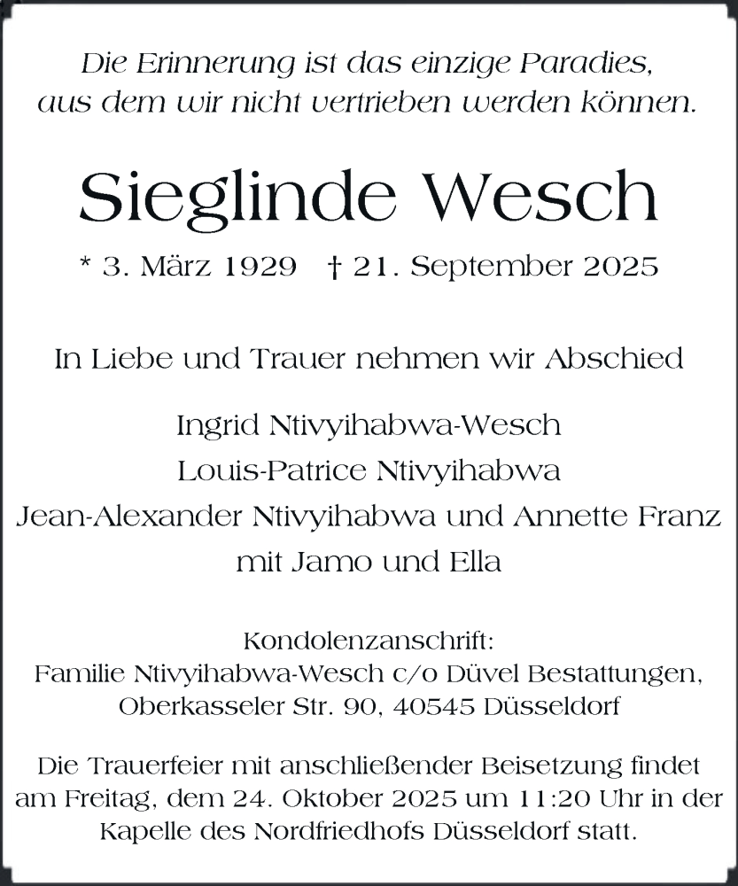 Hier finden Sie alle Traueranzeigen aus der Zeitung, die bisher für Sieglinde Wesch erschienen sind. Weitere Traueranzeigen, die in der Zeitung erscheinen, werden hier ebenfalls aufgelistet