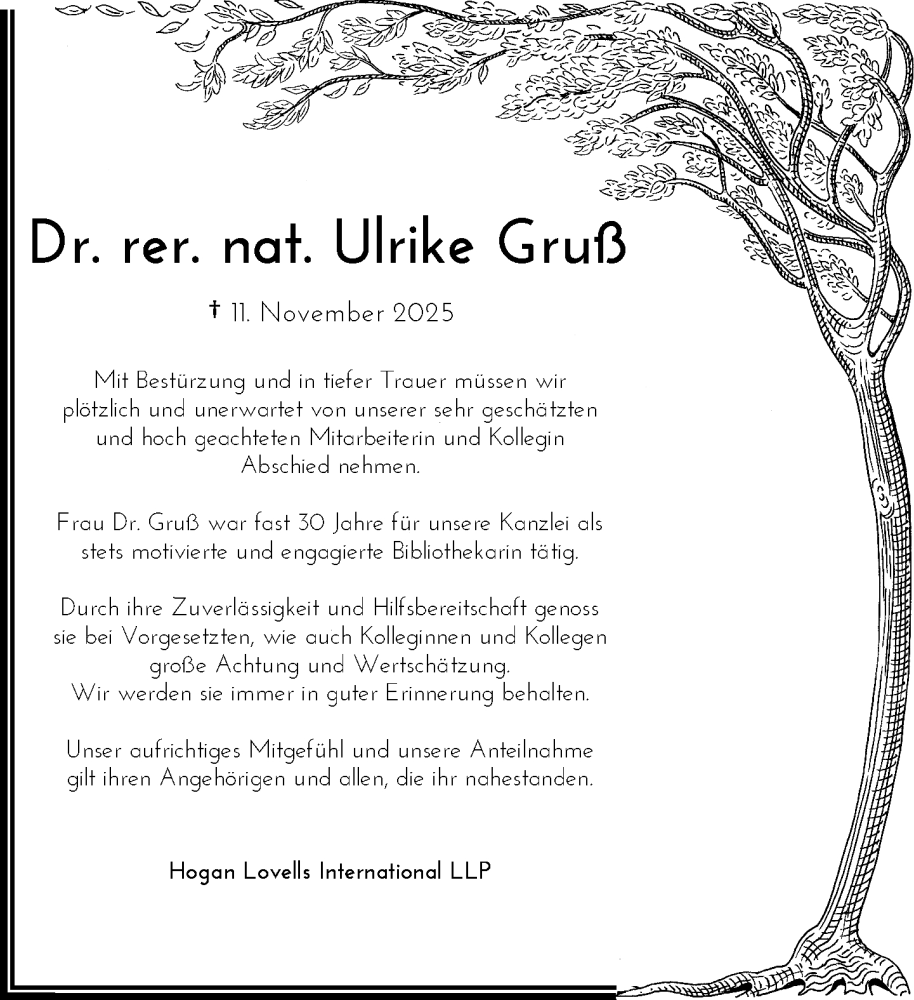 Hier finden Sie alle Traueranzeigen aus der Zeitung, die bisher für Ulrike Gruß erschienen sind. Weitere Traueranzeigen, die in der Zeitung erscheinen, werden hier ebenfalls aufgelistet