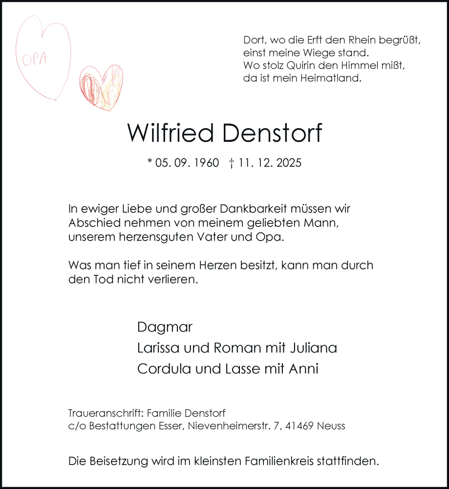Hier finden Sie alle Traueranzeigen aus der Zeitung, die bisher für Wilfried Denstorf erschienen sind. Weitere Traueranzeigen, die in der Zeitung erscheinen, werden hier ebenfalls aufgelistet