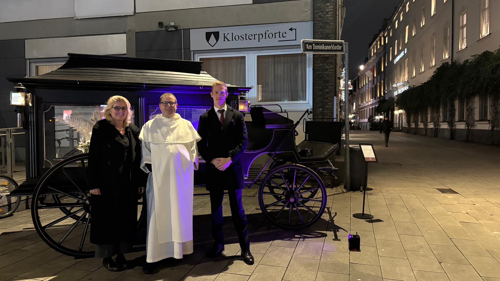 Tradition, Transparenz und persönliche Begleitung stehen dabei im Mittelpunkt des gesamten Teams. Neben klassischen Erd-, Feuer- und Seebestattungen bietet das Unternehmen auch Naturbestattungen und individuelle Vorsorgeberatung an. „Unsere Aufgabe verstehen wir vor allem als einen Dienst am Leben, denn mit unseren Leistungen verschaffen wir den Trauernden den dringend benötigten Freiraum. So können diese sich vornehmlich auf den Abschied von dem verstorbenen Menschen vorbereiten und für ihn und sich selbst einen würdevollen Schlusspunkt setzen“, erläutert Katja Halm. Ein neues Herzensprojekt ist zudem der nun jährlich in der Dominikanerkirche St. Andreas stattfindende „Abend der Trauer und des Trostes“, zu dem das Haus Carl Salm Angehörige und Freunde von Verstorbenen zusammen mit den Dominikanern einlädt. Mit Musik, Kerzenlicht und persönlichen Worten wird hier Raum geschaffen, um zu gedenken, Trost zu finden und das Leben der Verstorbenen zu würdigen — unabhängig von Religion oder Weltanschauung. Unter dem Motto „Zum Paradies mögen Engel dich geleiten“ fand die Premiere statt. Rund 150 Menschen waren der Einladung gefolgt. „Es war ein besinnlicher und versöhnlicher Abend in einem wunderschönen Rahmen. Die Dominikanerpater Thomas Möller und Christoph Bergmann gestalteten den Tröstungs-Gottesdienst. In der Kirche waren mehrere Stationen aufgebaut. Die Gäste schrieben sich in ein Gedenkbuch ein, zündeten Kerzen an und beschrifteten Steine, die auf dem Altar gelegt werden konnten“, berichtet Inhaberin Katja Salm.